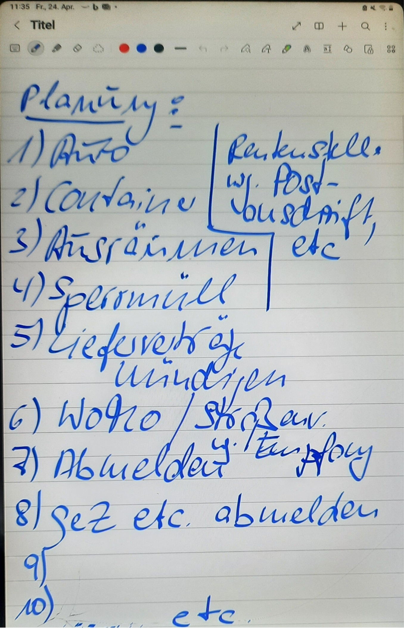 Die Termine für die Ausräumung des Hauses und den Sperrmüll stehen im Terminkalender/Smartphone. Mein jetziges Auto wurde zum Verkauf u. a. auf www.automobil.de und www.kleinanzeigen.de inseriert.